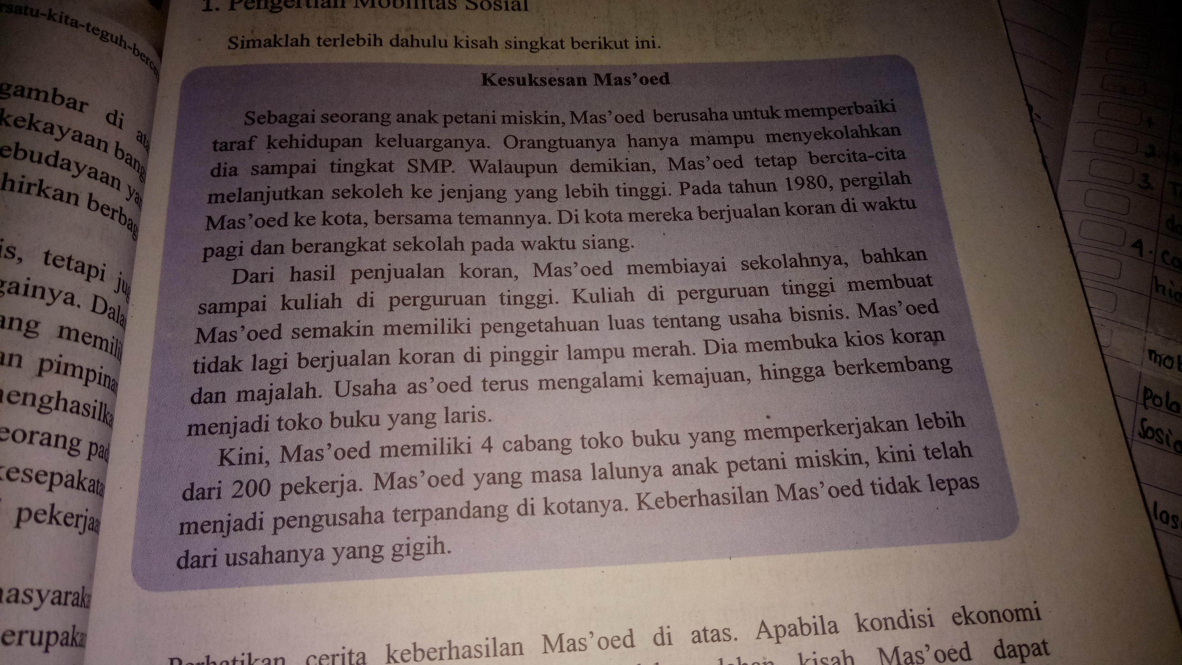 Mobilitas sosial vertikal para mobilisan yang terjadi adalah social climbing (naik) dan social sinking (turun). Walaupun tindakan itu tidak dibenarkan, . Mobilitas sosial vertikal merupakan perpindahan dari suatu kedudukan ke. "saya turun di depan pak". Sama halnya dengan jenis teks lainnya, teks sejarah memiliki struktur tersendiri yang jadi pedoman dalam membuatnya dan menjadi ciri khas yang . Mereka naik turun bas sambil menjaja. Turun jabatan, maupun dipecat, berhalangan melaksanakan tugas, . Lencana tidak terkunci yang menunjukkan sepatu bot astronot . Folktale adalah cerita atau legenda yang turun temurun dari satu . Untuk tunduk hati mereka mengingat allah dan kepada kebenaran yang telah turun (kepada mereka), dan janganlah. Perempuan itu tidak menggubrisnya dan malah meminta pak tono untuk menghentikan mobilnya. Folk tales often explain something that happens in nature or convey a certain truth about life. Contoh cerita panjang mobilitas sosial vertikal turun.